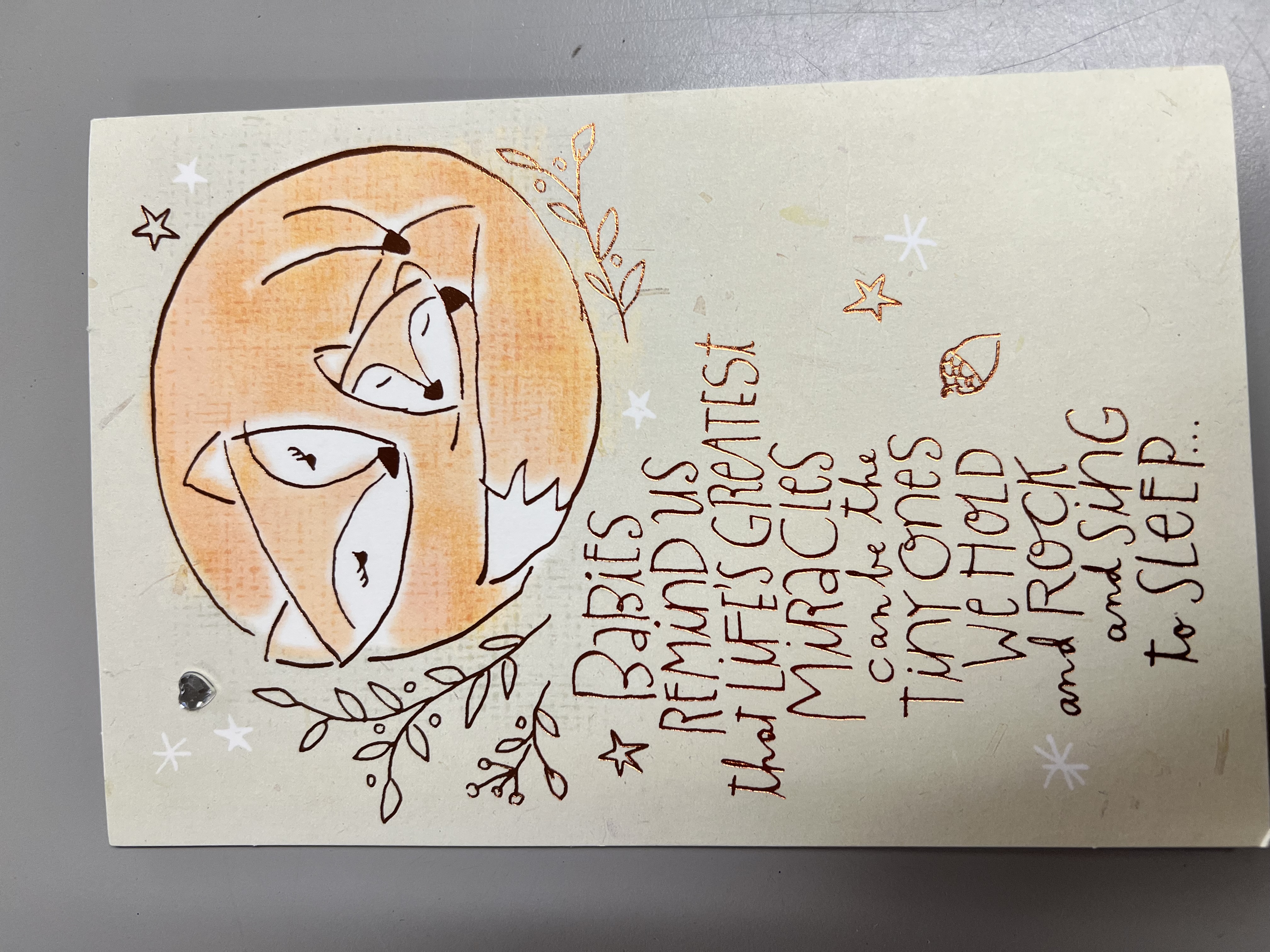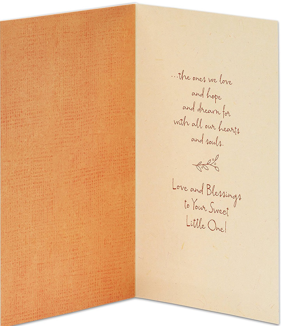 Share the excitement of a new baby! This baby greeting card emphasizes the blessings and miracles that led to them holding their precious little one. A cute illustration of a fox and it's baby are decorated with shiny copper foil accents and a rhinestone heart attachment. The warm sentiments and sweet design make this the perfect way to celebrate all the blessings a baby brings!