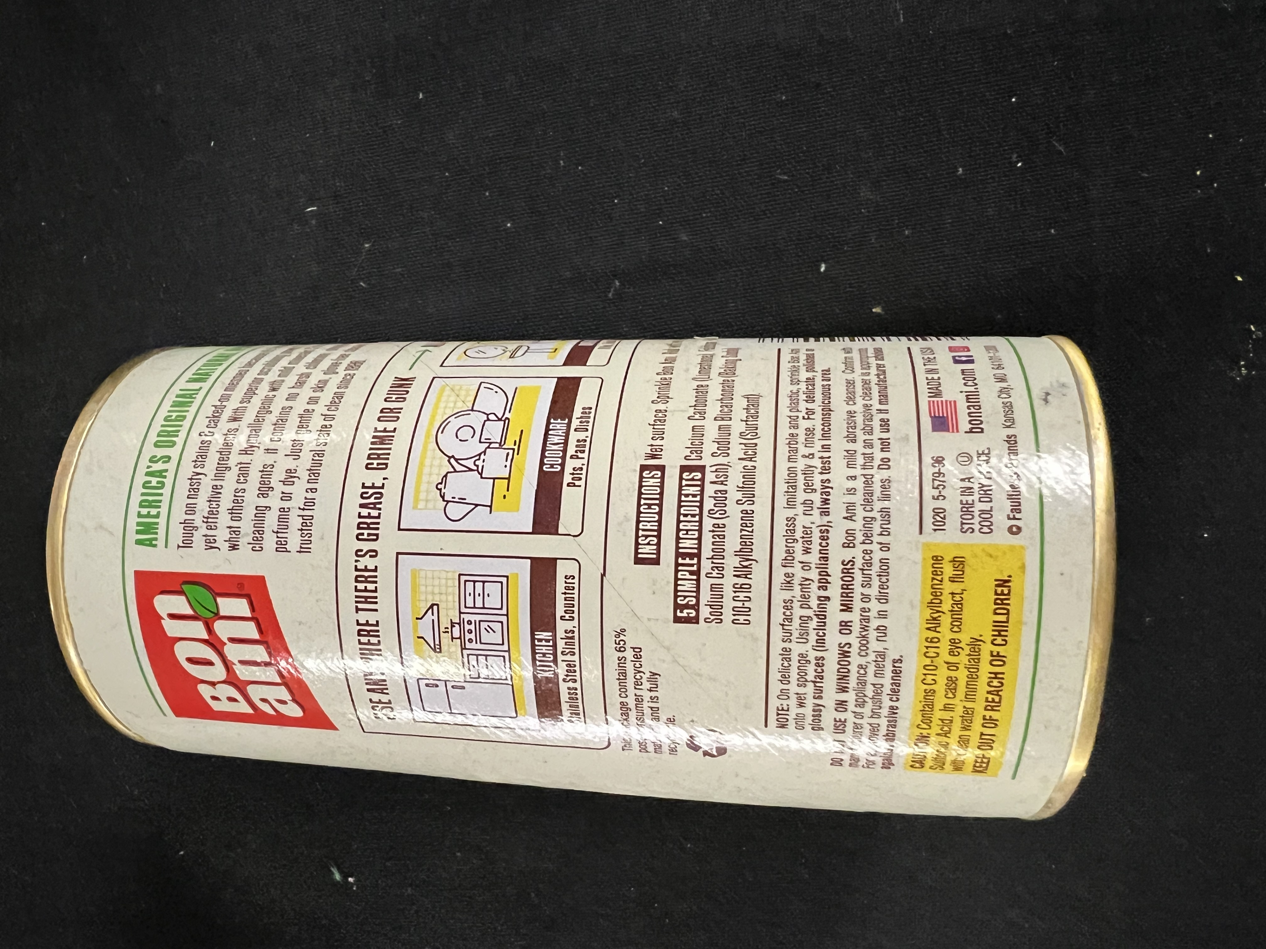 Unique ingredients remove dried on splatters and spills, burned on grease, baked on food, and sticky messes. Recommended by plumbing fixture, appliance, and cookware manufacturers because it cleans without scratching. Does not contain chlorine, perfume, dye, phosphorous, or bleach. Safe to use in the kitchen, on utensils, and eating surfaces, and around children and pets. 14 oz.