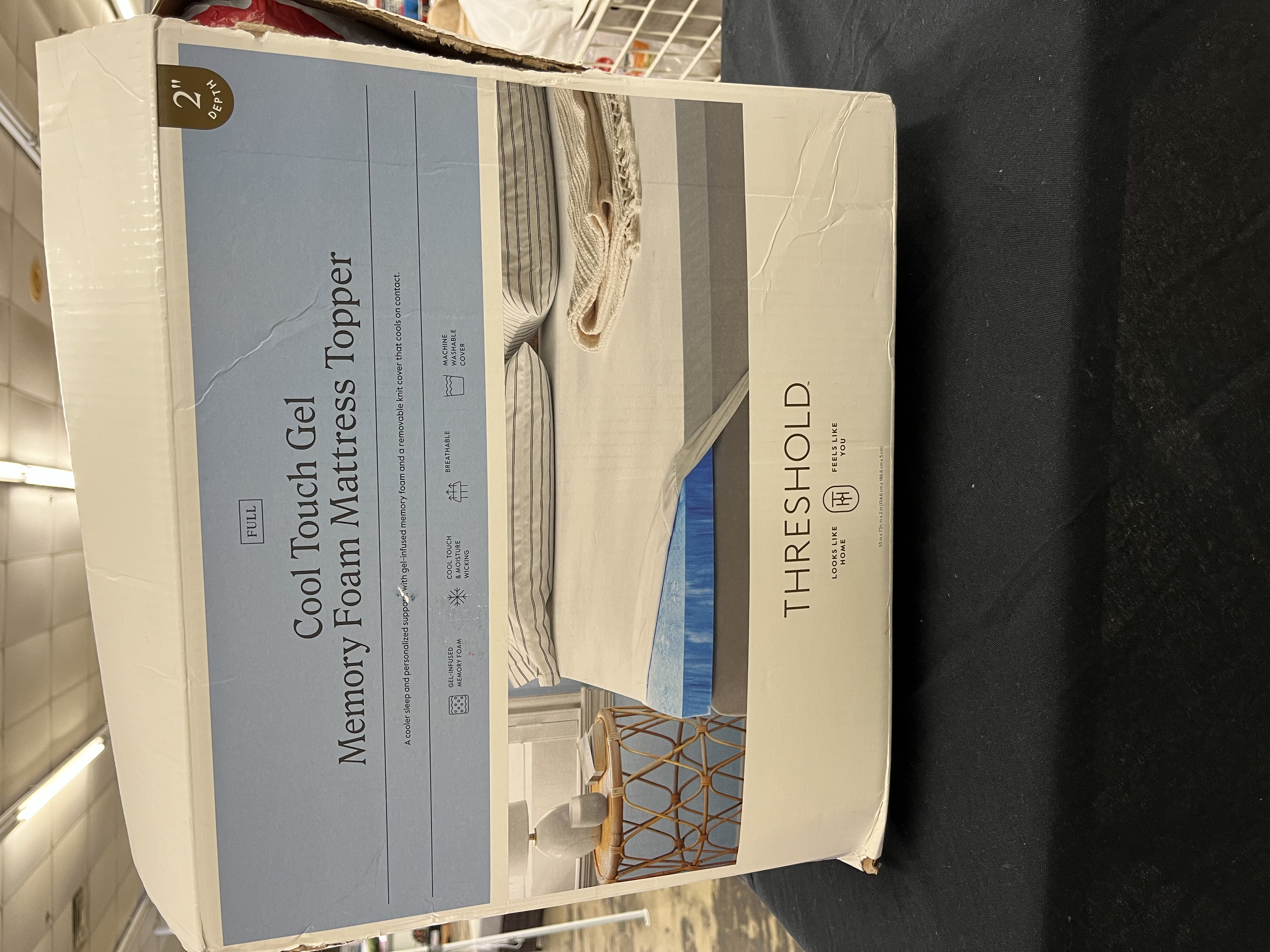 Elevate your sleep experience with this 2-Inch Cool Touch Memory Foam Mattress Topper from Threshold™. This moisture-wicking mattress topper is made with cool-touch technology to create a cool, comfortable and refreshing sleep surface. Made from soft memory foam material, it adapts to the shape of your body for improved comfort and support while sleeping. This cooling mattress topper fits a maximum mattress depth of 16 inches, and it also comes with a machine-washable cover for easy care. • 2in memory foam mattress topper • Cool-touch design • Moisture-wicking fabric • Fits up to 16in mattress depth • Cover is machine washable • STANDARD 100 by OEKO-TEX certified
