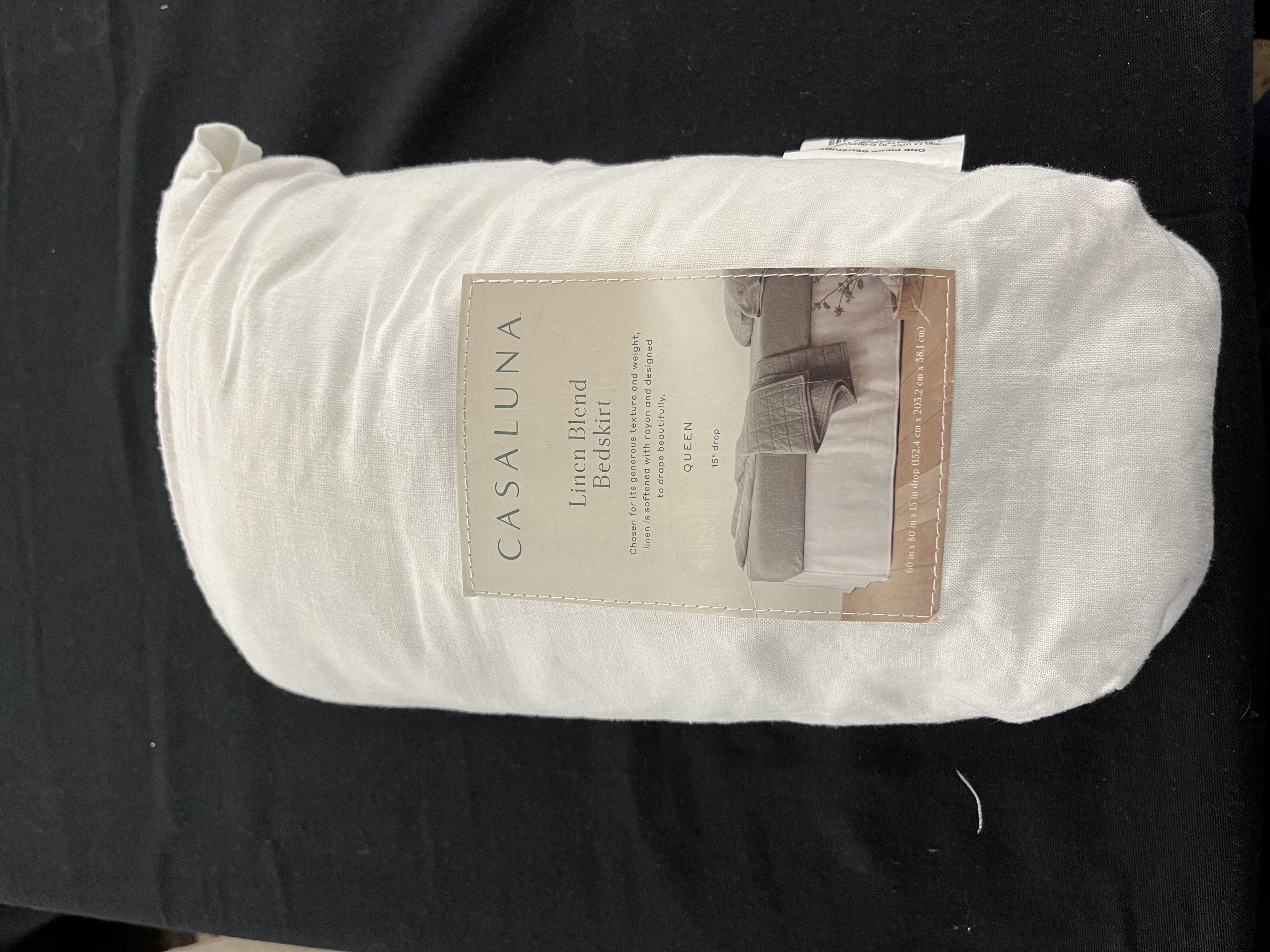 Put the finishing touch on your bedding with the Linen Blend Bedskirt from Casaluna™. This bedskirt is made from linen softened with rayon to create a generous texture and weight that's designed to drape beautifully from your bed. A 15-inch drop is perfect for covering the space between the bottom of your bed frame and the floor, and split box-pleats at the corners make it able to fit a variety of bed sizes. The bedskirt comes in soft neutral tones that help to create a soothing look in your bedroom. This is your invitation to create a space that’s just for you. Make room to relax with Casaluna, where calm and comfort are naturally at home. Tested for harmful substances and produced sustainably in accordance with OEKO-TEX® guidelines. • Linen and rayon bedskirt is designed for a beautiful drape • Bedskirt features 15in drop • Full-coverage corners with split box-pleats at seams let it fit most bed frames • Neutral tones bring a soothing aesthetic to your room