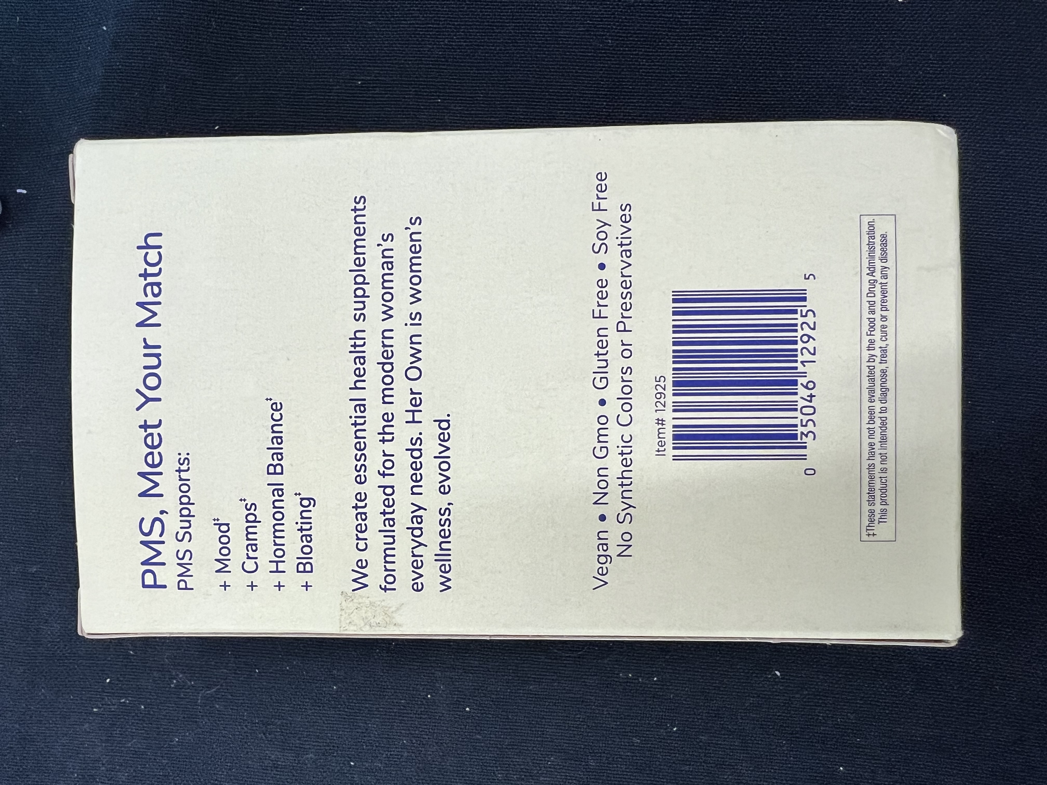EVERYTHING YOU WANT. NOTHING YOU DON’T. Her Own supplements are formulated using only the finest ingredients. PMS Capsules are vegan, non-GMO, gluten free and soy free, with no synthetic colors or preservatives.