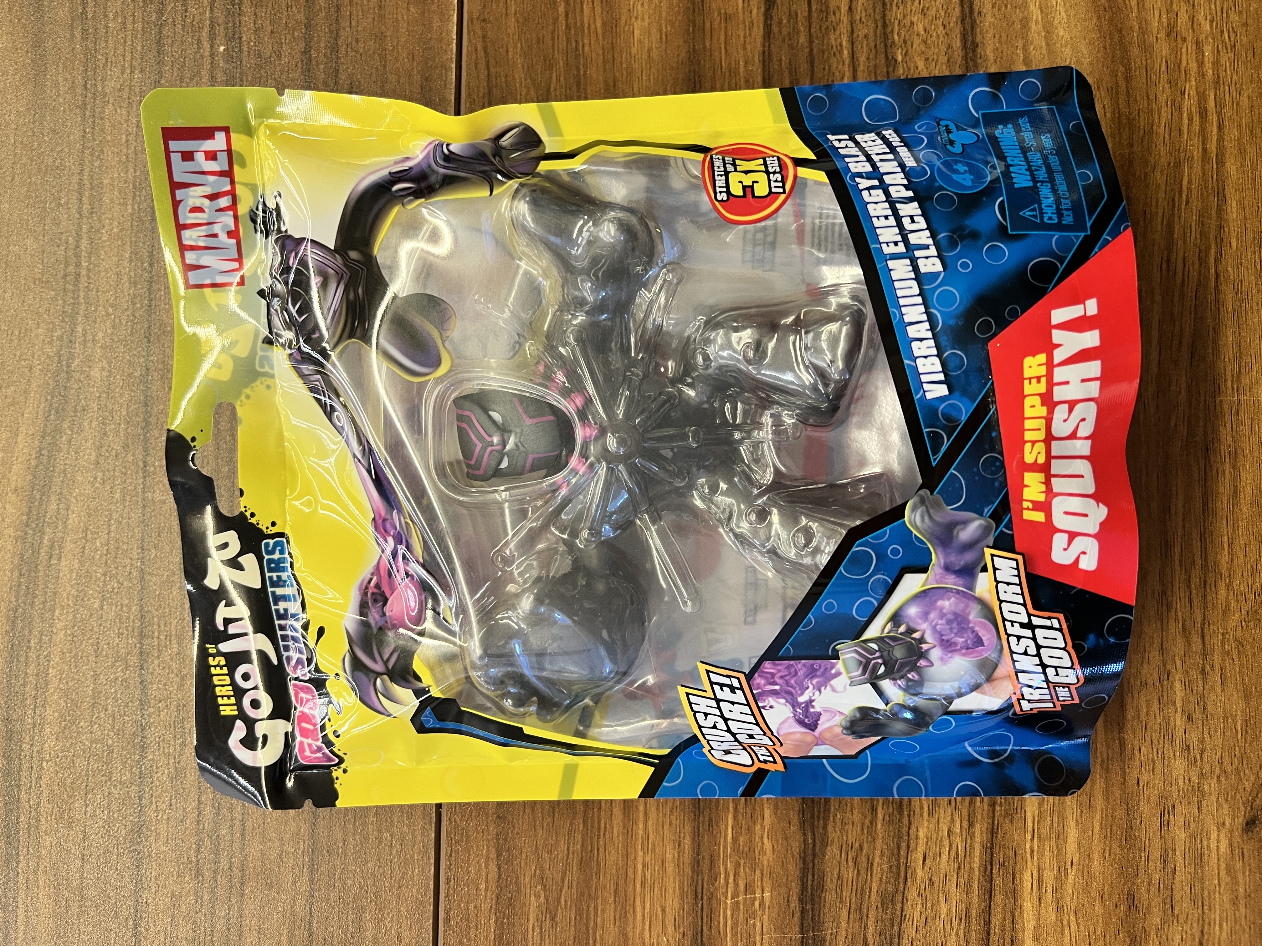 Heroes of Goo Jit Zu Goo Shifters the Marvel edition Hero Vibranium Energy Blast Black Panther has a unique goo filling making him feel super squishy!