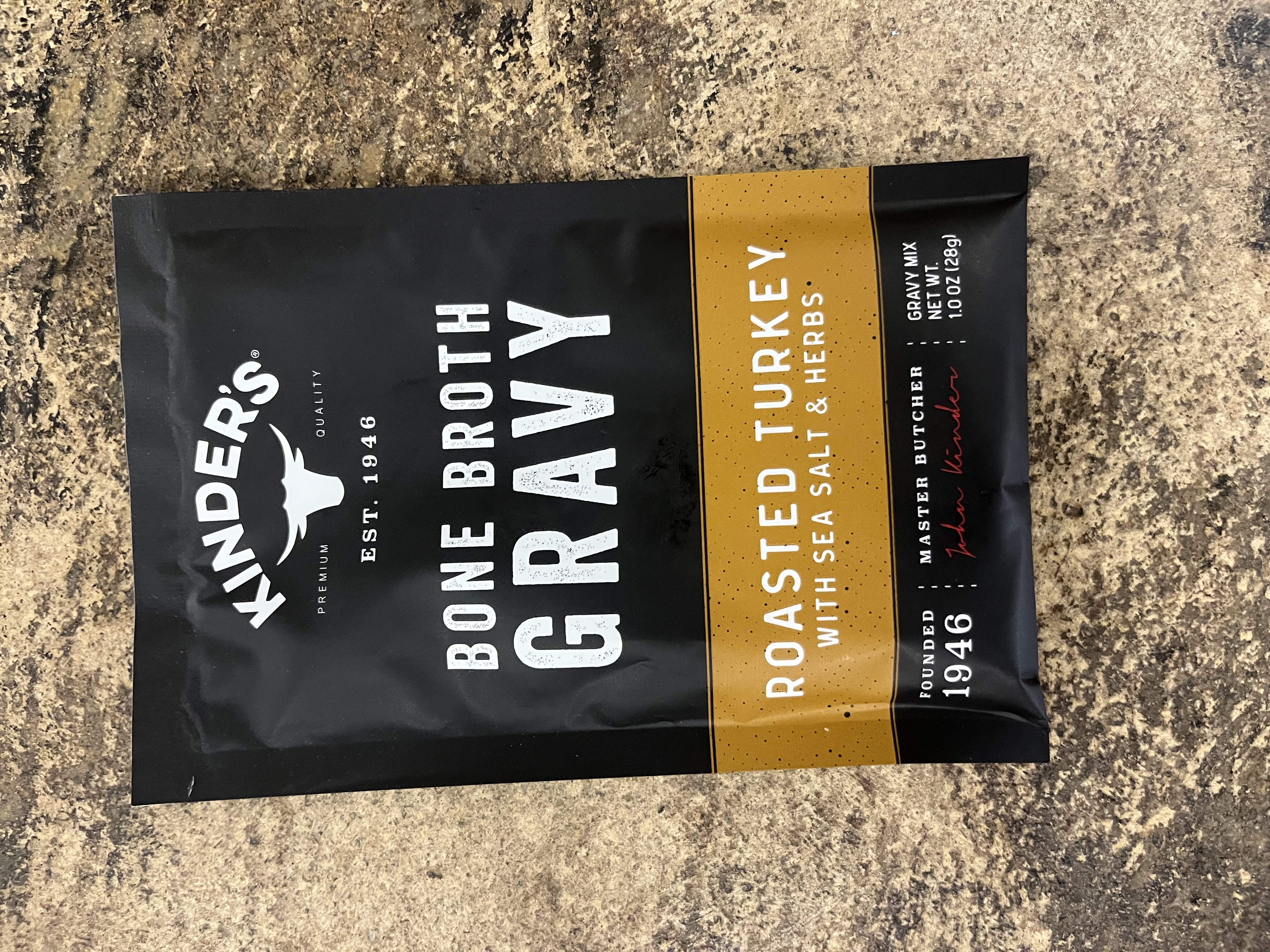 Kinder's Roasted Turkey Bone Broth Gravy 1 Oz (Pack of 3) Enhance your meals with the rich, savory taste of Kinder's Roasted Turkey Bone Broth Gravy! This convenient 3-pack of 1 oz gravy seasoning packets brings the comforting, full-bodied flavor of roasted turkey and bone broth to your favorite dishes. Perfect for holidays, family dinners, or everyday meals, Kinder’s gravy mix is crafted with quality ingredients that make preparation simple and flavorful. Enjoy a smooth, homestyle gravy that pairs wonderfully with roasted meats, mashed potatoes, and stuffing, adding the perfect finishing touch to any meal. Bring the authentic flavor of roasted turkey and bone broth to your table with Kinder's Roasted Turkey Bone Broth Gravy Pack—a must-have for any occasion!