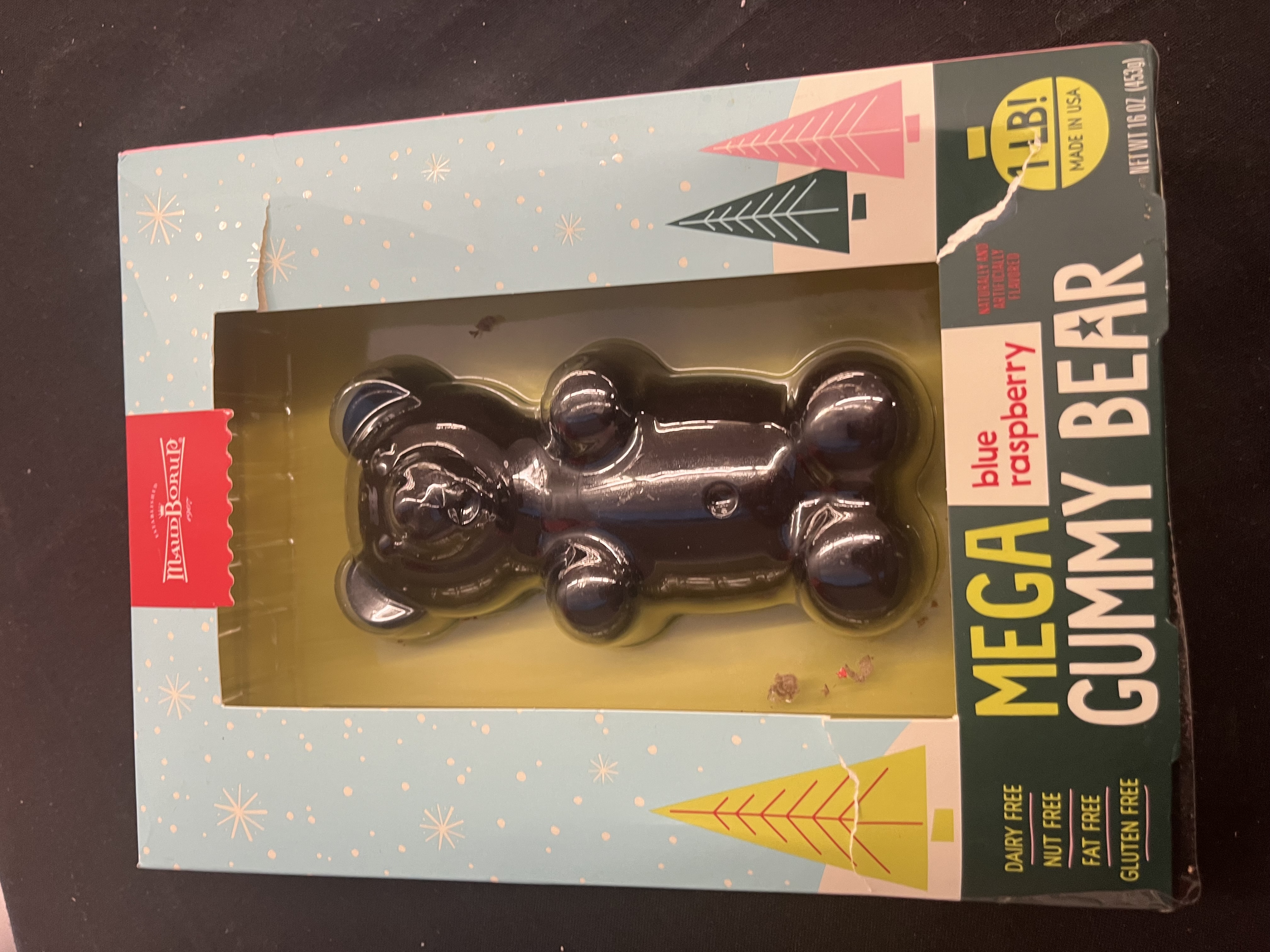Satisfy your sweet tooth with the Maud Borup Giant Gummy Bear. This one-pound gummy bear is the perfect gift to give the special someone in your life who loves gummies. It's great as a holiday present for secret Santa, set it out as a unique, fun treat for a holiday party, or get it for yourself as a sweet treat. It comes in two fruity flavors cherry and blue raspberry. The box has a printed spot to write who this wonderful gift is intended for and whom it is from, so you can set it under the tree without wrapping. Give the gift of the Maud Borup Giant Gummy Bear for a fun holiday season.