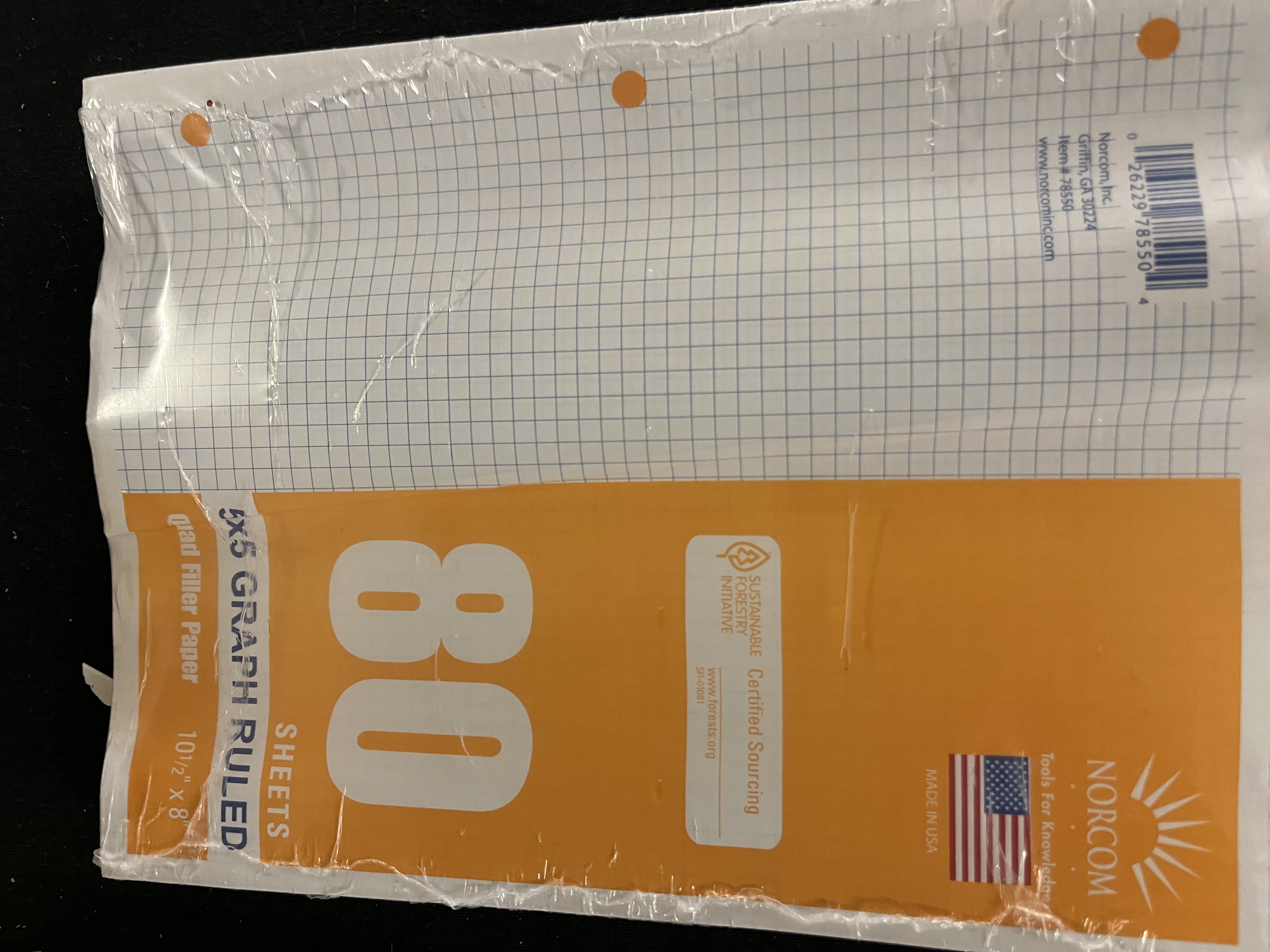 Norcom 80 Sheets 5x5 Graph Filler Paper, 10.5" x 8" This graph filler paper is great for students in geometry and other math courses, or for anybody who simply wants to take notes on graph ruled paper. The 5"x5" quad ruling will help with organizing data, equations, and formulas. The three-hole-punched edge allows for easy fit with any standard binder. This graphic filler paper is also great for working professionals who need to record and keep data organized. Each pack has 80 sheets of 5x5 graph ruled papers.