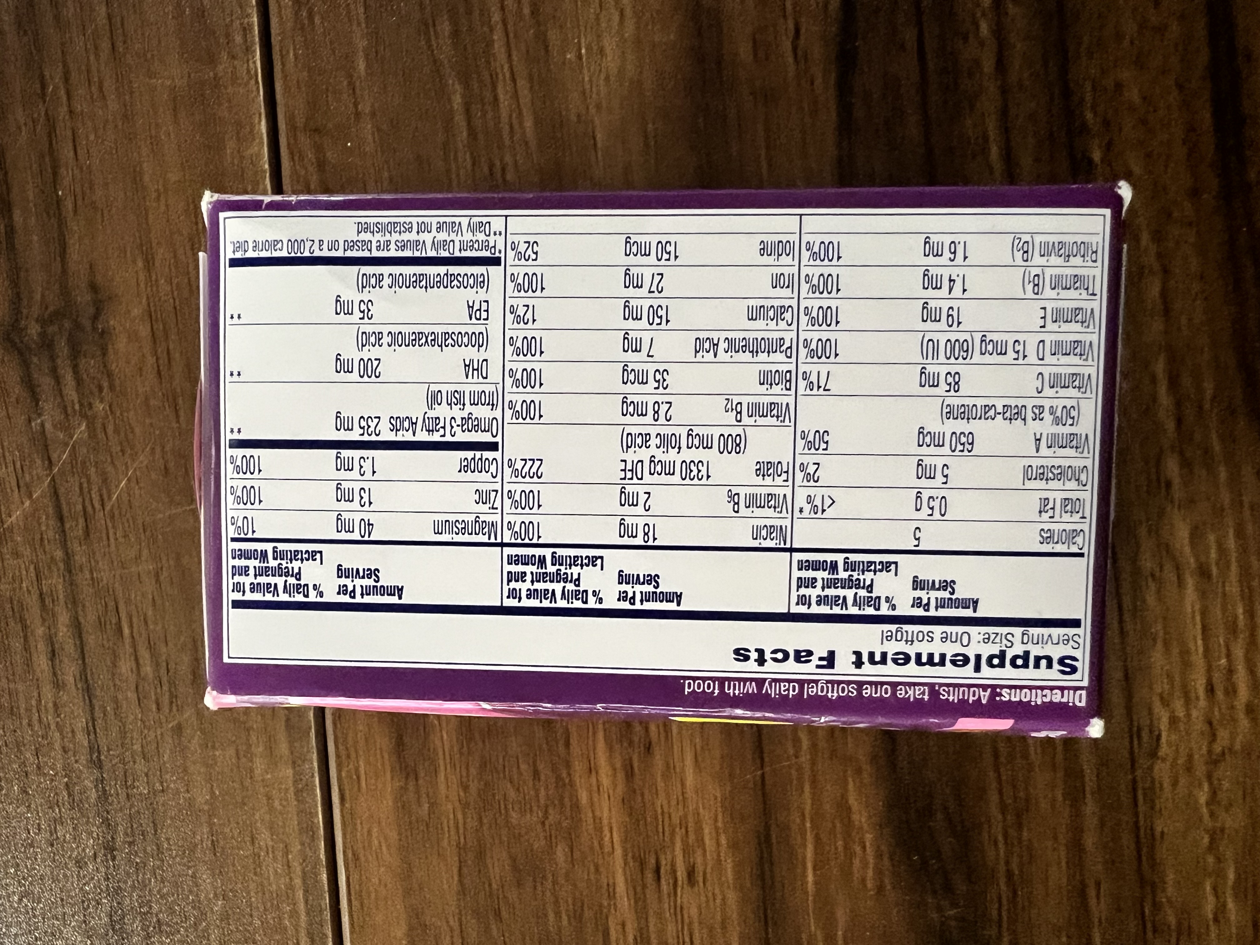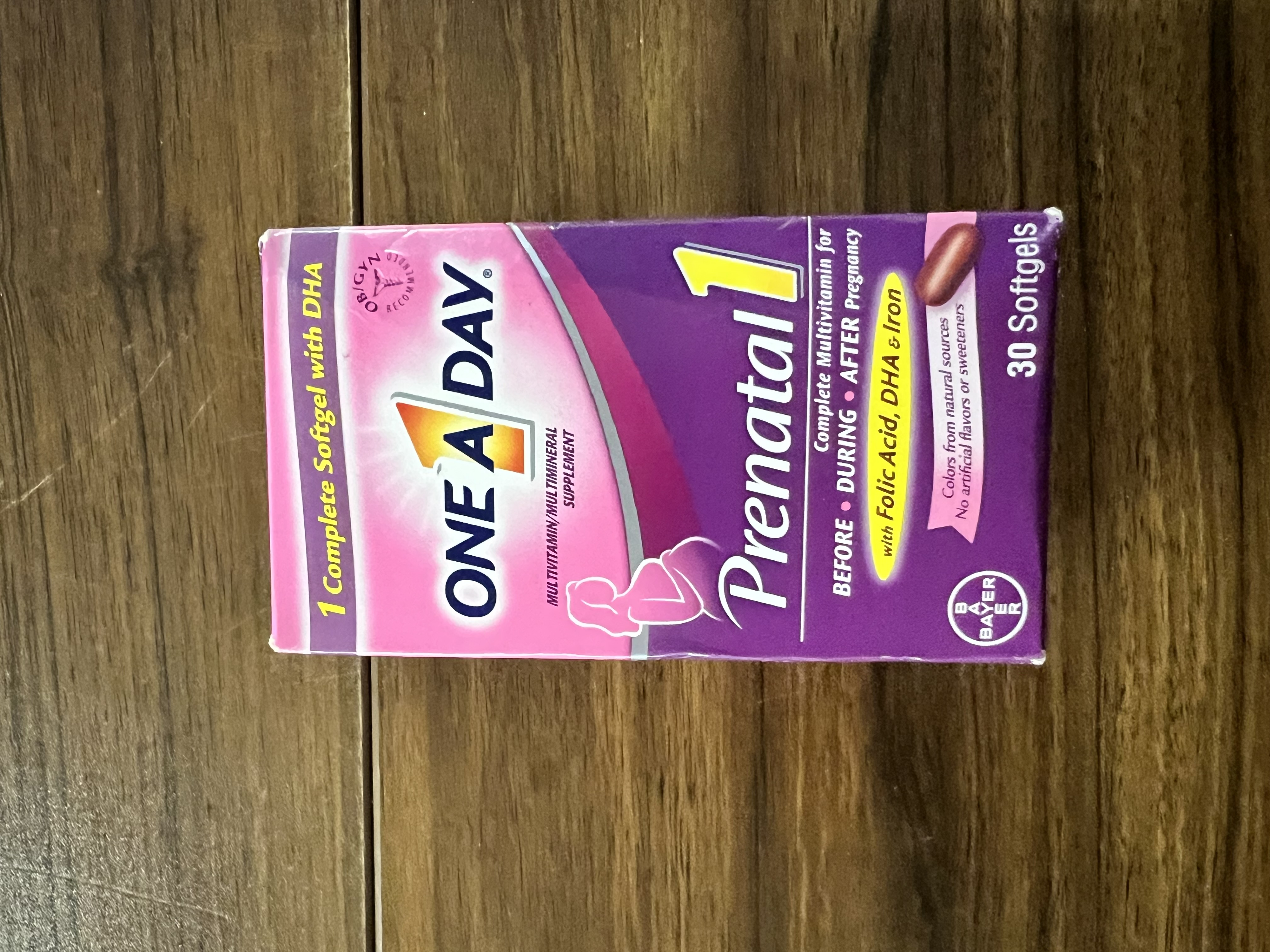 One A Day Women's Prenatal 1 Multivitamin is a complete Prenatal multivitamin specially formulated to provide women with nutritional support before, during, and after pregnancy Contains key nutrients Folic Acid, Omega-3 DHA, Calcium, Vitamin D, and Iron One A Day Women's Prenatal 1 Multivitamin is the #1 OB/GYN recommended over the counter brand of prenatal multivitamins Adding a prenatal multivitamin to daily routines is an important step in providing nutritional support for pregnant women and babies throughout pregnancy and breastfeeding One A Day Prenatal 1 Multivitamin Softgels are gluten free and contain no artificial sweeteners or high fructose corn syrup One A Day Vitamins are compliant with the new FDA labeling regulations. You may see products that have both the original and new supplement facts labels. You can trust that One A Day is committed to providing you with nutrients you may need at the best quality we can provide.