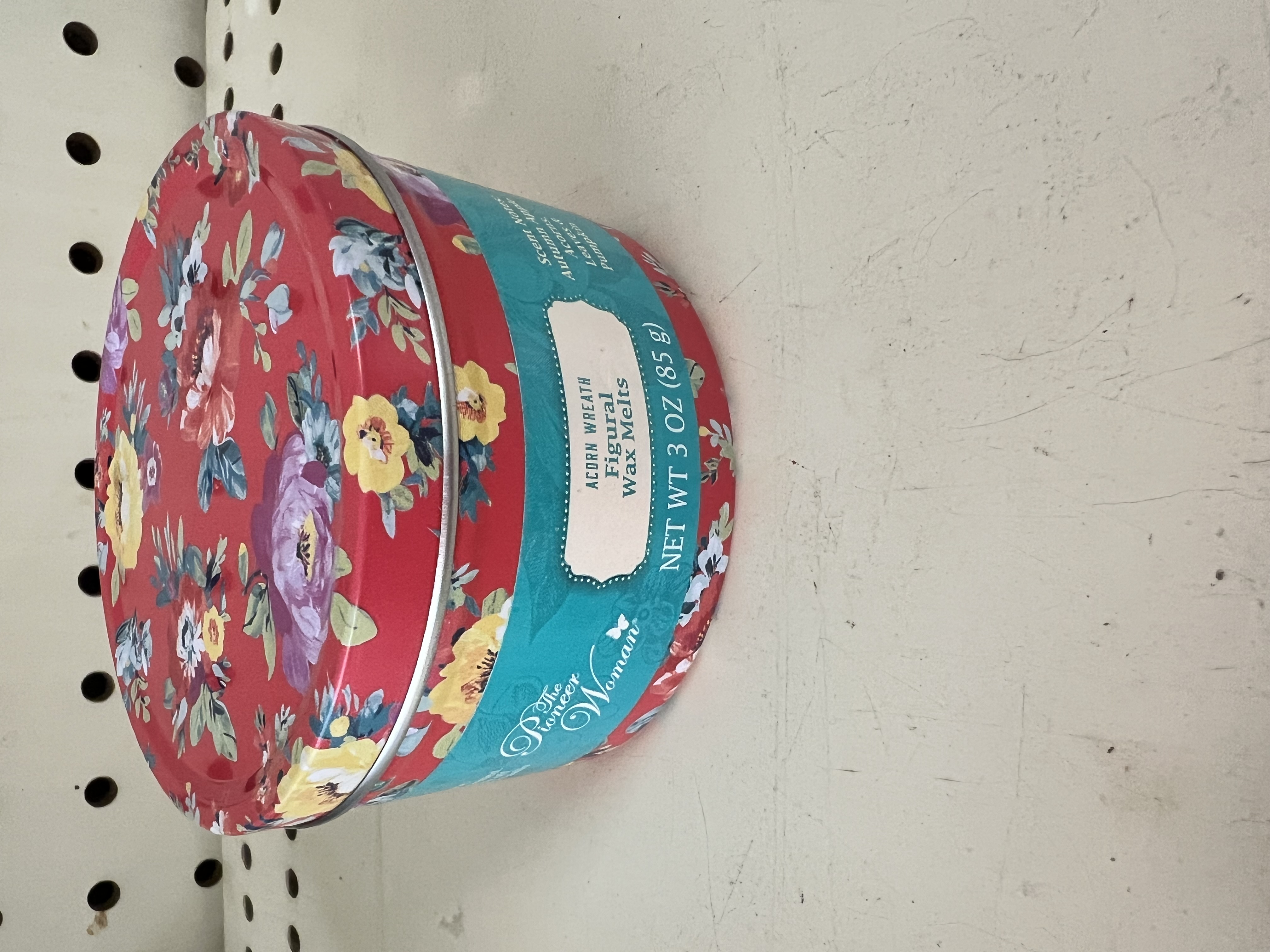 Revitalize your day with the long-lasting fragrance of The Pioneer Woman Acorn Wreath Figural Wax Melts. Boasting a combination of crisp and woodsy scents, including notes of autumn apples, acorns, leaves, and pumpkins, this collection of Acorn Wreath wax melts is certain to keep your home feeling sweet, warm, and ever reminiscent of the fall season. Each set includes a convenient vintage-inspired tin decorated with gorgeous floral designs and containing 10 charming rose-shaped wax melts that can be used in any wax warmer. The tin comes topped with a lid for easy storage when not in use, and the size of the tins ensures that you can always bring your favorite fragrance with you wherever you go. You can even repurpose the beautiful tin to store your trinkets in once you've finished enjoying the melts. Find delight in the alluring scent of The Pioneer Woman Acorn Wreath Figural Wax Melts.