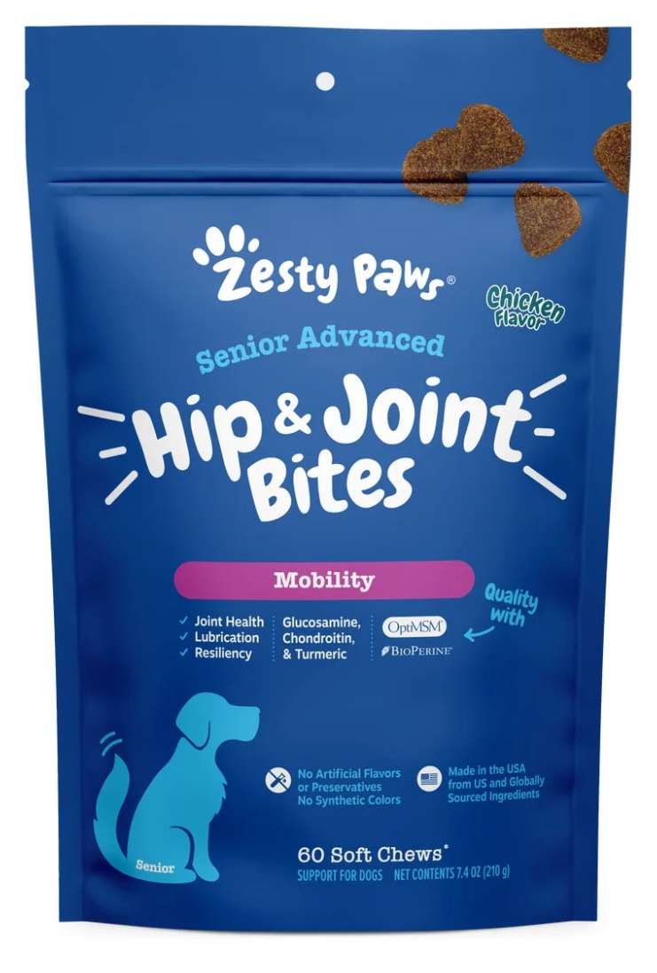 For dog parents, nothing is more important than helping our canine companions age gracefully. So, it’s only natural that you’ll go the extra mile to help! That’s why we created Advanced Mobility Bites, which are premium chewables that provide hip and joint support to keep senior dogs jumping for joy. This functional chewable dog supplement features OptiMSM, a form of MSM that provides premium muscular support, plus Qmin+ (Curcumin) to provide premium support for hips and joints and BioPerine (black pepper extract) to support the Curcumin’s absorption. These ingredients, along with Glucosamine HCl, Chondroitin Sulfate, Green Lipped Mussel, Vitamin C, Vitamin E, and Hyaluronic Acid support hips, joints, connective tissue, and cartilage for dogs.